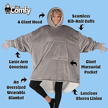 • High-Grade Fabrics: “The Comfy” utilizes premium materials like ultra-soft microfiber and warm sherpa lining, ensuring that each hoodie offers maximum comfort without sacrificing durability. These fabrics are chosen for their gentle touch and long-lasting wear, providing users with a cozy experience that endures through repeated use.