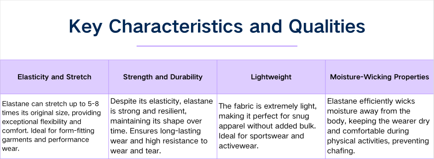 1. Elasticity and Stretch: Elastane can stretch up to 5-8 times its original length, offering exceptional flexibility and comfort. This significant stretchability makes it ideal for form-fitting garments and performance wear.