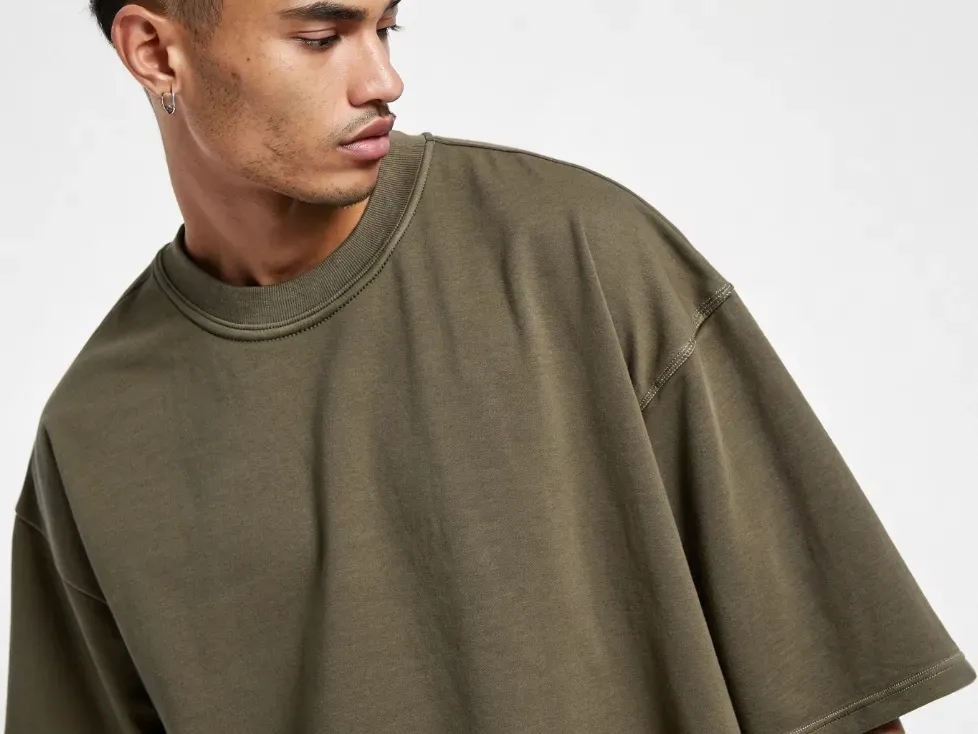 Fabric weight is the most immediate factor influencing how a drop shoulder T-shirt reads visually.