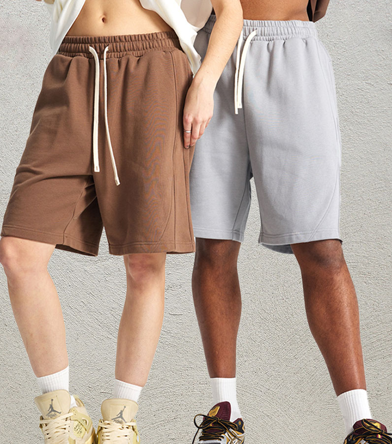 Crafted for streetwear ease, these casual fleece sweat shorts blend minimal patchwork seams with everyday versatility. The soft cotton blend and elastic waist ensure comfort for lounging or city strolls.