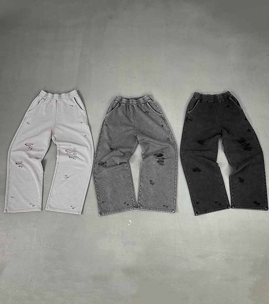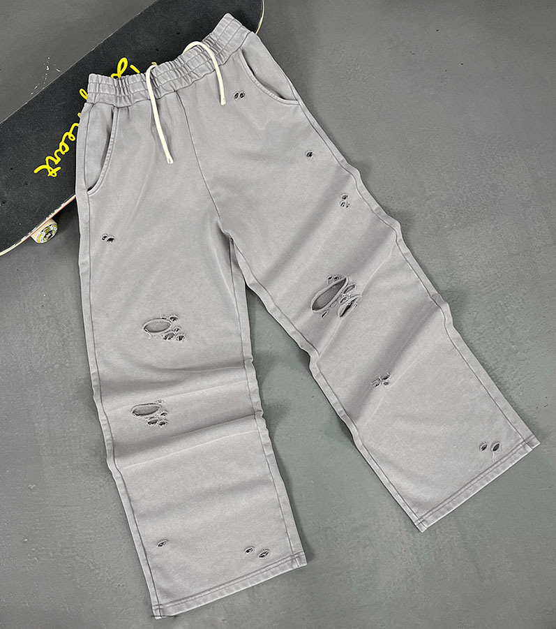 Crafted for edgy streetwear, these washed sweatpants feature allover distressed detailing and a soft 100% cotton build. The wide-leg cut and relaxed fit deliver both comfort and statement appeal, ideal for skate style or laid-back citywear.