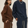 This oversized crewneck sweatshirt is made with thick plush fleece and a structured fit, offering full coverage and warmth for cold days. Designed for comfort and style, it’s perfect for lounging or layering in streetwear looks.