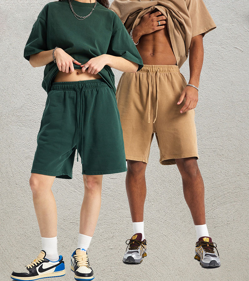 Designed for comfort and streetwear appeal, these vintage washed shorts are crafted from heavyweight cotton fleece. The garment dyeing gives them a soft hand feel and lived-in look, perfect for relaxed styling year-round.