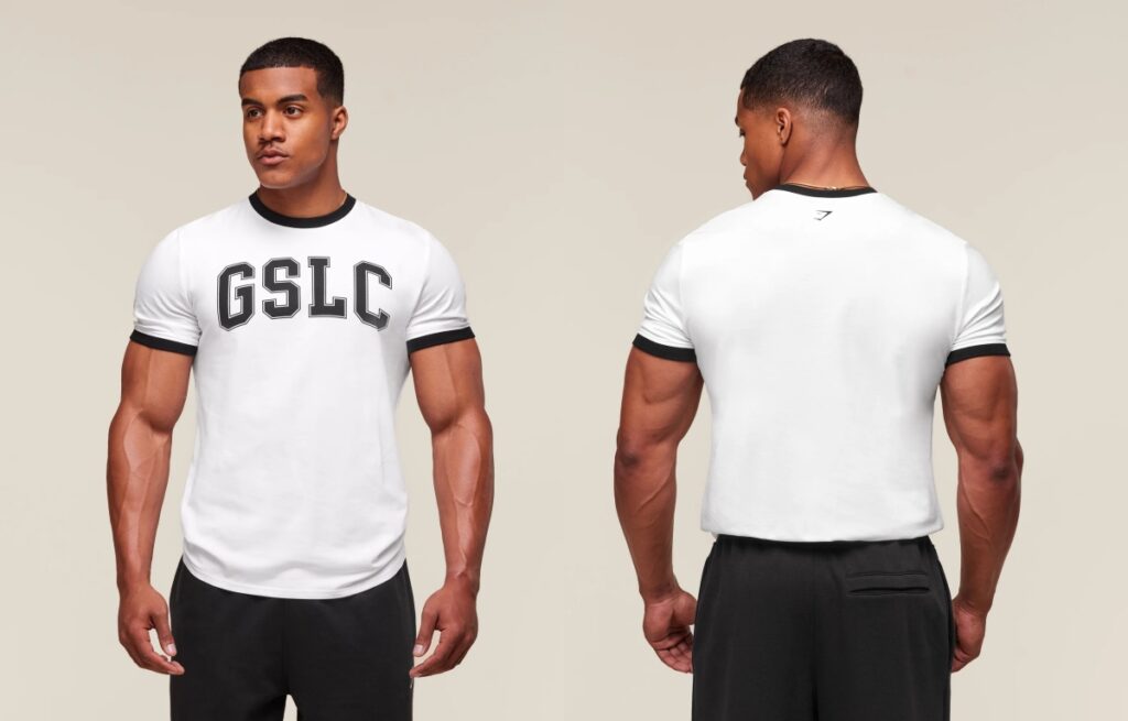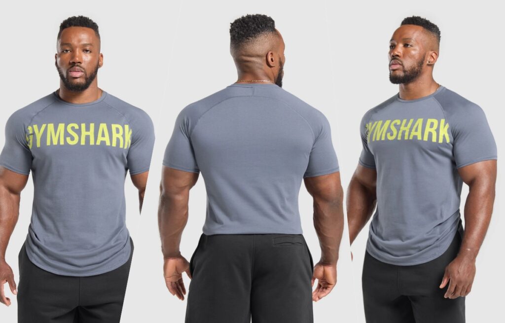A short-sleeve T-shirt that highlights the chest, shoulders, and arms.