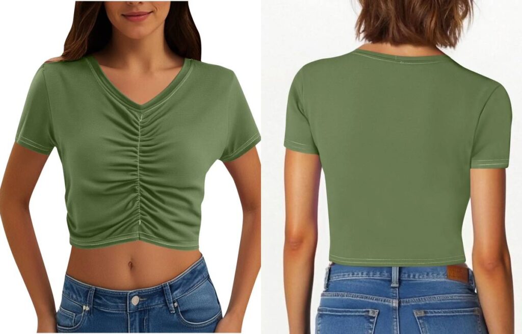 Ruched Cropped Tee | Side or center drawstrings | Trendy, body-shaping | Nights out, fitted looks |