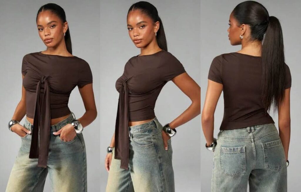 Tie-front cropped tees strike a balance between casual and styled. They’re more elevated than a basic tee but not as formal as a blouse.