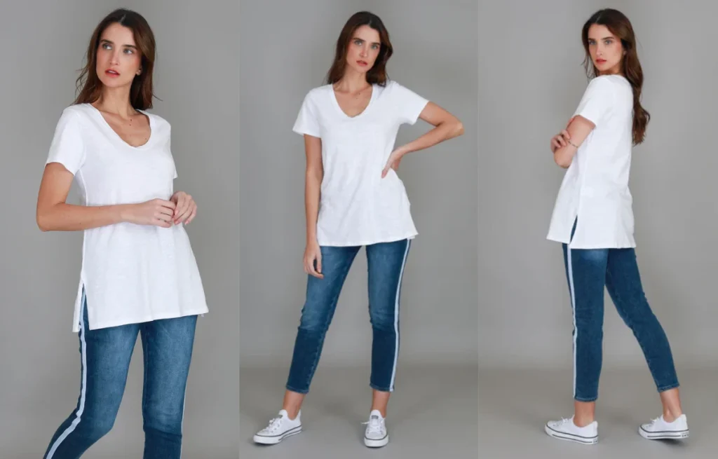 Design tweaks like raw hems, slub textures, longer lengths, or drop shoulders bring fresh appeal to the basic scoop neck design while maintaining its core function.