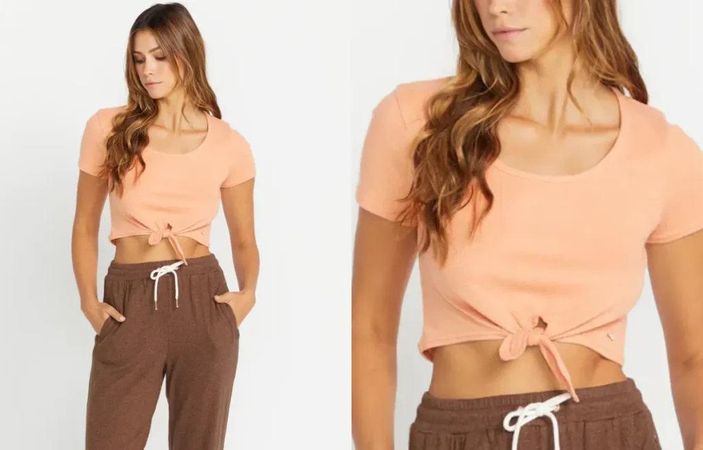 The layered scoop neck tee uses dual fabrics, visible panels, or built-in layering effects to add structure, opacity, or dimension — perfect for brands looking to offer elevated basics.