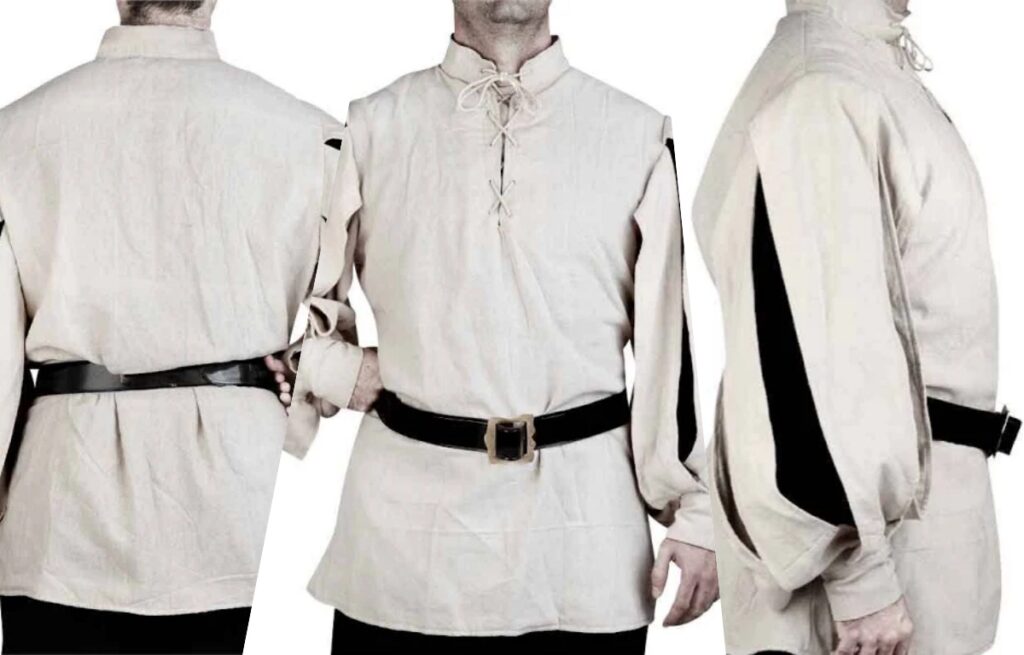 A Virago sleeve is a 17th-century puffed sleeve, divided into two gathered sections and tied with ribbons, creating a layered, dramatic shape.