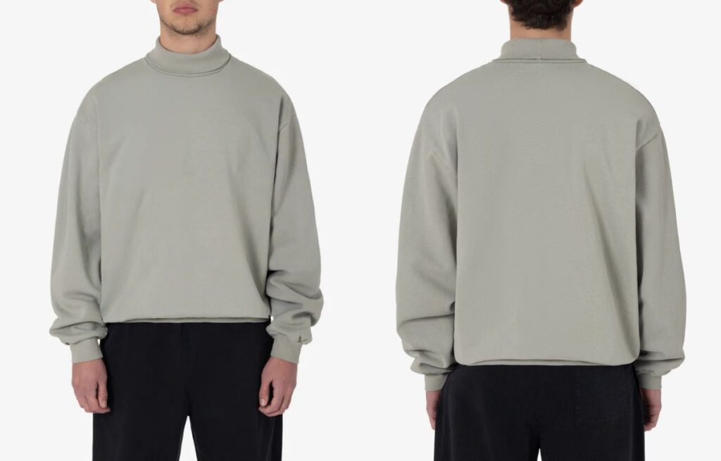 A mock neck sweatshirt has a collar that stands about 1–2 inches high without folding over. Unlike turtlenecks, it’s not restrictive, and compared to crewnecks, it offers more neck coverage and an elevated look.