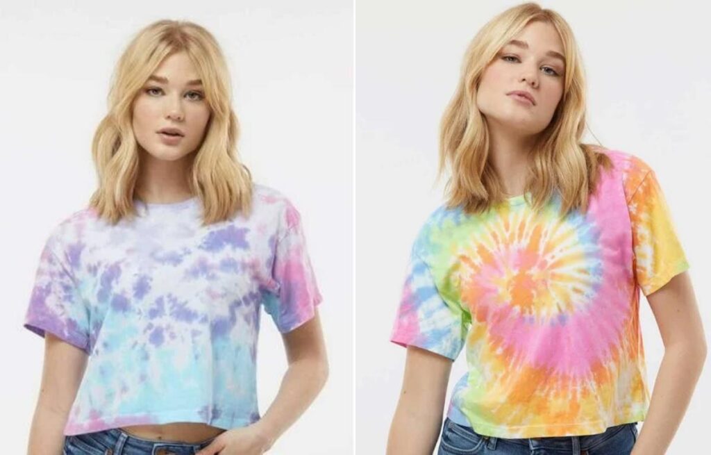 Cropped tie-dye T-shirts are often aimed at female consumers or younger fashion audiences. They’re shorter in length and often have a raw hem, giving a more casual, edgy feel.