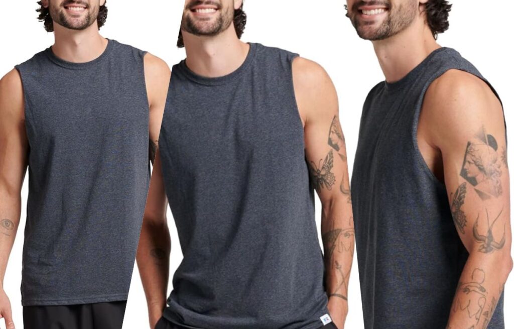 The muscle tank is a sleeveless vest with deep-cut armholes, designed to highlight upper-body definition and allow full range of motion. It’s often made from cotton or performance blends.