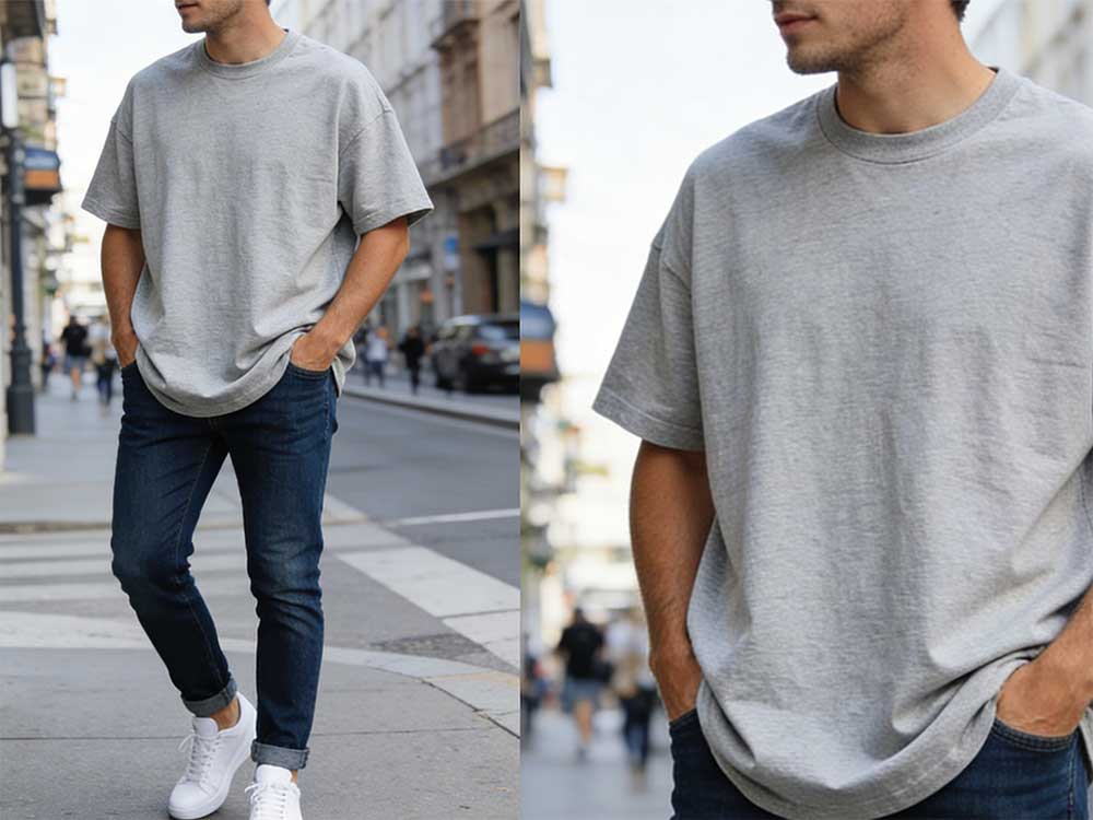 Regular cotton T-shirts rely on body contact to maintain shape, while oversized cotton T-shirts must sustain their silhouette with less physical support. This requires deliberate changes in shoulder treatment, body volume distribution, and pattern geometry.