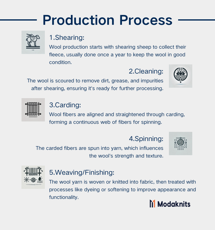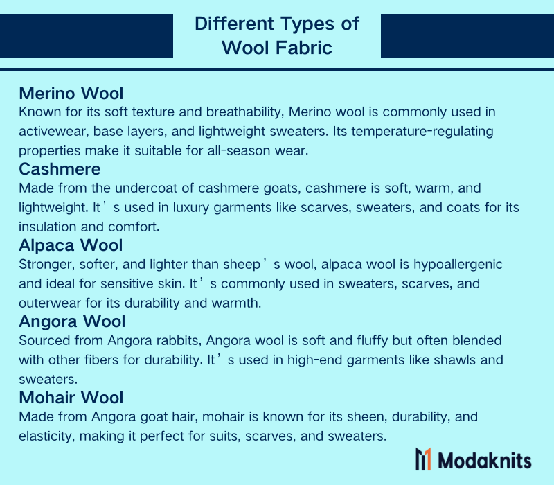 - Fiber Softness and Strength: Merino wool and other high-quality wool varieties are known for their fine, soft texture and durability, making them ideal for premium garments.
